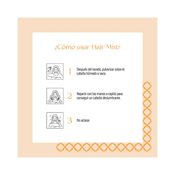 - Aplicar após cada lavagem dentro ou fora do chuveiro, com o cabelo ainda úmido. Pulverizar por todo o cabelo.