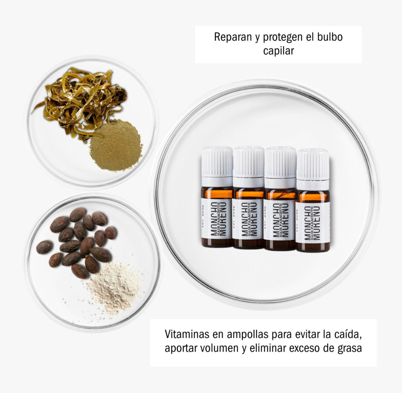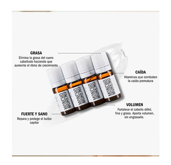 Vitaminas em ampolas com nossa inovadora loção trifásica para combater a queda prematura do cabelo.