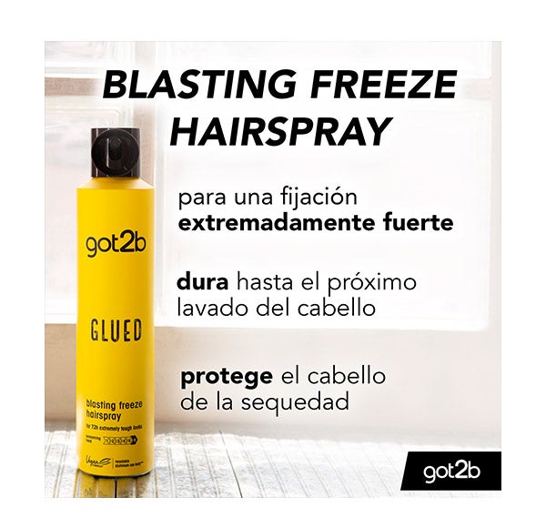- Para um efeito máximo, utiliza o cola got2b no teu cabelo molhado e fixa-o com o spray de congelamento got2b.
