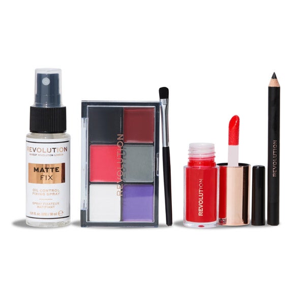 1x Paleta de seis tons brilhantes e escuros (preto, branco, vermelho e roxo) em fórmulas em creme, ideais para um impacto total.