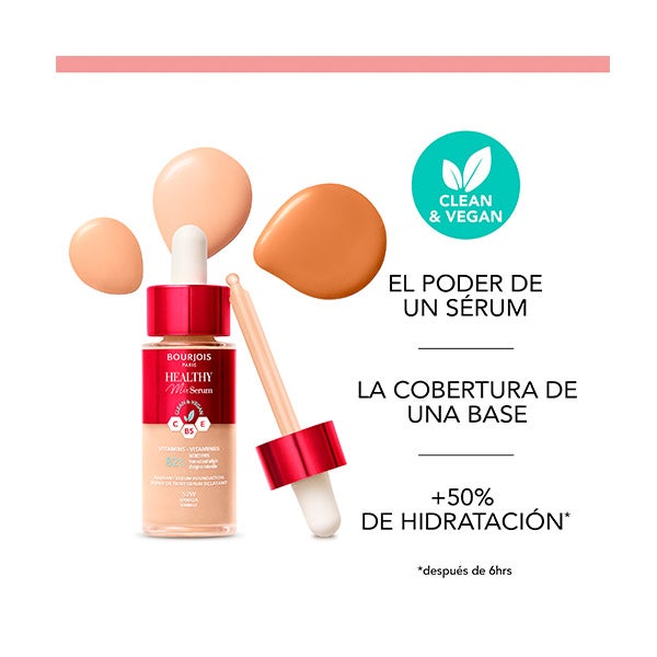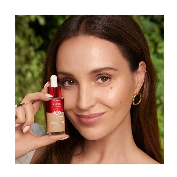 Bourjois apresenta Healthy Mix Serum Foundation, o mix perfeito entre sérum e maquiagem. Está formulado com 82% de ingredientes naturais, além de ser clean e vegano, e está enriquecido com vitaminas C, E e B5 e extrato de arandos vermelhos, um componente anti-rugas natural que tonifica e preenche a pele, devolvendo sua flexibilidade ao longo do tempo. Tem múltiplos benefícios, entre eles, tonificar a pele, restaurar a flexibilidade, proporcionar um brilho saudável e aumentar a hidratação, graças ao seu mix de vitaminas! Tem uma cobertura média para o rosto, disponível em 6 tons, e sua textura é sedosa e suculenta para proporcionar um toque saudável e radiante na sua pele. O que você está esperando para experimentá-lo?