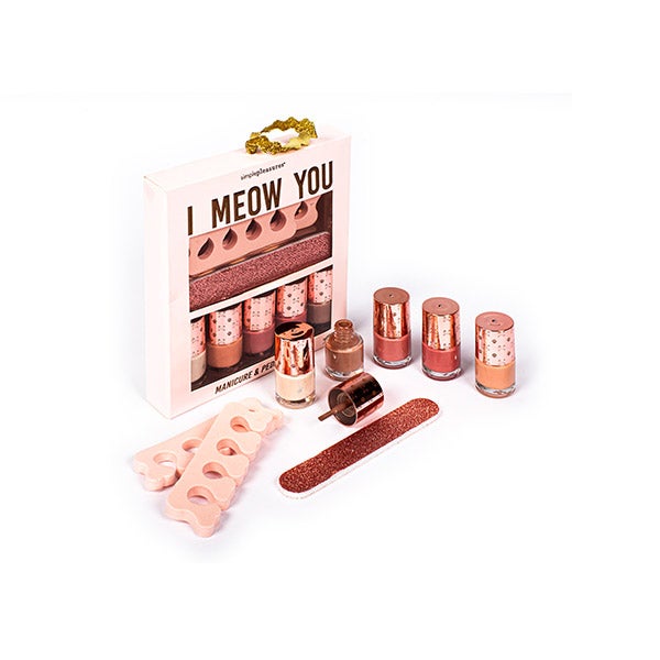 Kit de manicure que inclui lixa, separador e esmaltes de unhas