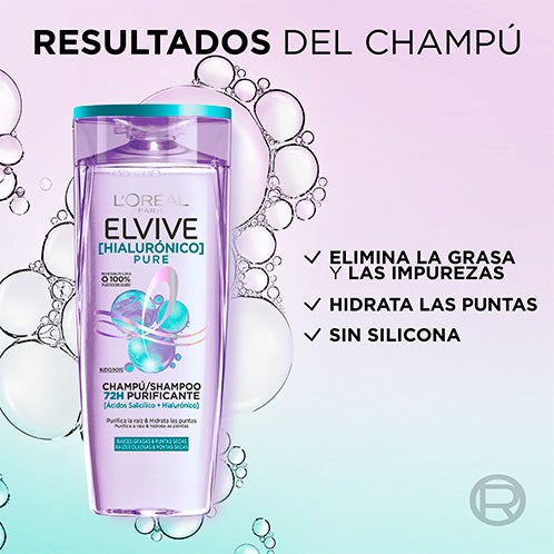 L'Oréal Paris Elvive Champô Hialurônico Pure Com Ácido Salicílico Para Cabelo com Raízes Oleosas e Pontas Secas