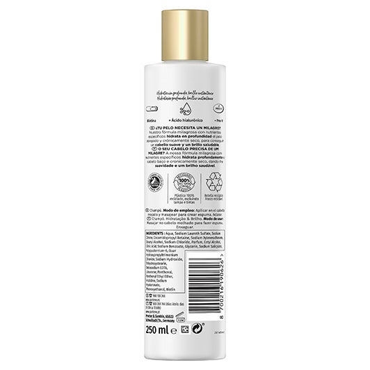 Quer exibir um cabelo bonito todos os dias? O shampoo Pantene Hidratação e Brilho é rico em nutrientes e resistente ao frizz. Deixará seu cabelo com uma hidratação reluzente. Nossa fórmula Pro-V, enriquecida com biotina e ácido hialurônico, absorve a umidade e proporciona hidratação profunda ao cabelo seco e opaco.