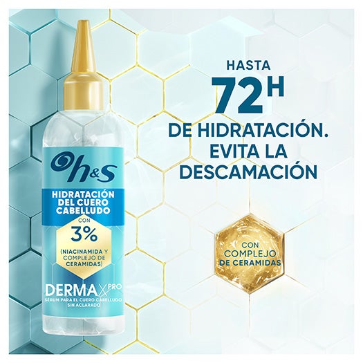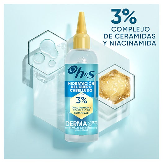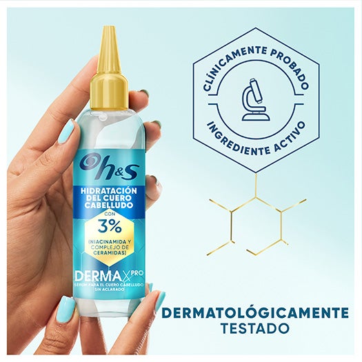 ¿Couro cabeludo seco? ¿Sabia que você pode melhorar muito a sua hidratação? O bálsamo para o couro cabeludo DERMAXPRO da H&S, com piroctona olamina (um ingrediente ativo clinicamente comprovado) e ingredientes para o cuidado da pele (ácido hialurônico, aloe ativo e vitamina E) nutre e revitaliza o couro cabeludo para mitigar a secura e a caspa*. ¿O resultado? Proporciona 72 horas de hidratação quando usado junto com o shampoo anticaspa DERMAXPRO. * Caspa visível, com uso regular.