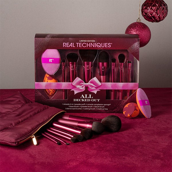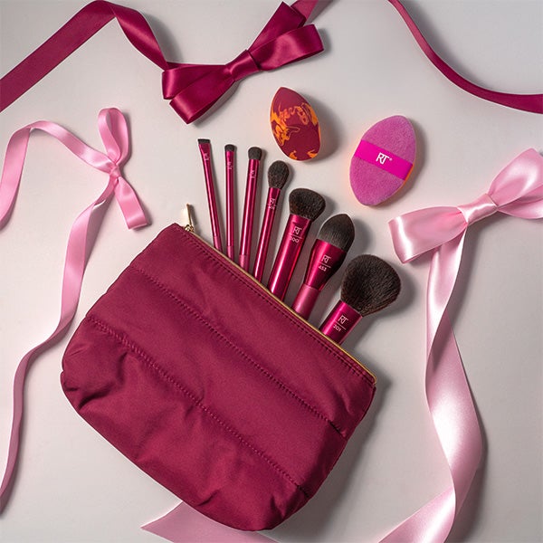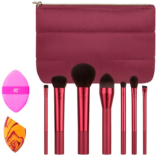Este conjunto de presente de 10 peças é para os amantes de pincéis e esponjas! Tudo o que você precisa para um brilho luminoso, além de uma bolsa para guardar tudo.