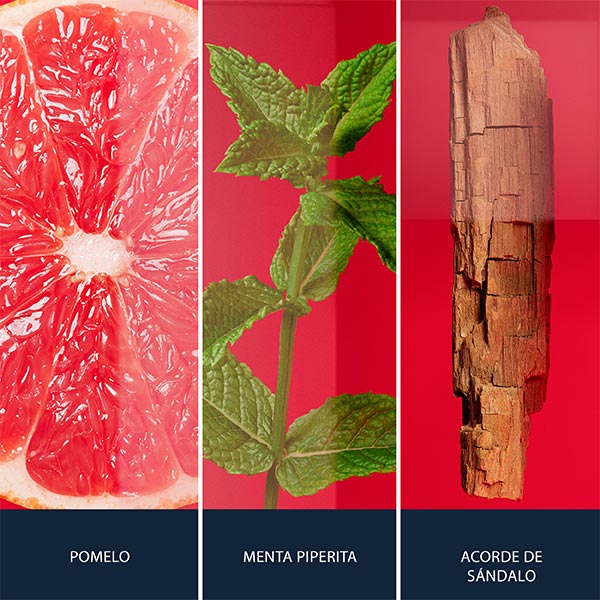 As notas de saída de toranja picante e limão vibrante se misturam com a hortelã-pimenta e as bagas de zimbro no coração da fragrância para proporcionar uma explosão de energia. As sutis notas de sândalo se combinam com o vetiver e a madeira de cedro para criar calor, uma sensação acolhedora no seu conjunto.