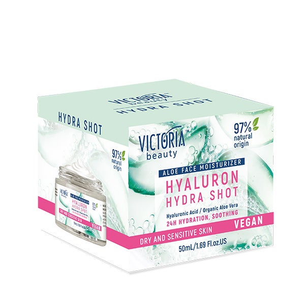 HIDRATANTE FACIAL DE ALOE VERA Enriquecido com ácido hialurônico, suco de aloe e niacinamida (Vit. B3), este hidratante diário saturado oferece toda a hidratação que a pele seca e sensível precisa.