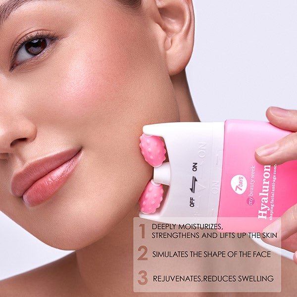 O rolo com tecnologia “FACE FIT” treina os músculos, modela o contorno do rosto, pescoço e decote, reduz o inchaço, ajuda a melhorar a tez e aprofunda a penetração dos componentes ativos, além de apoiar a rede de colágeno.