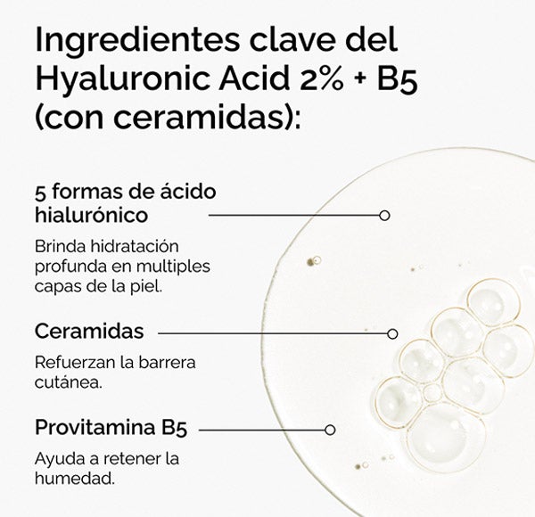 O ácido hialurônico a 2% + B5 proporciona uma hidratação volumosa instantânea para oferecer uma pele mais suave, lisa e de aparência saudável. A fórmula leve repõe os níveis de hidratação da pele com resultados durante todo o dia e ajuda a pele a reter a umidade para preencher a pele seca e desidratada. O ácido hialurônico 2% + B5 também promove a flexibilidade e elasticidade da pele, ao mesmo tempo que minimiza a aparência de linhas finas e secas.