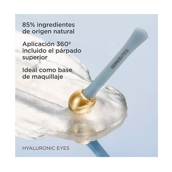 Hyaluronic Eyes proporciona uma experiência ultra-hidratante e tem uma textura de gel sorvete que pode ser resfriada no congelador para intensificar a sensação de frio na pele.