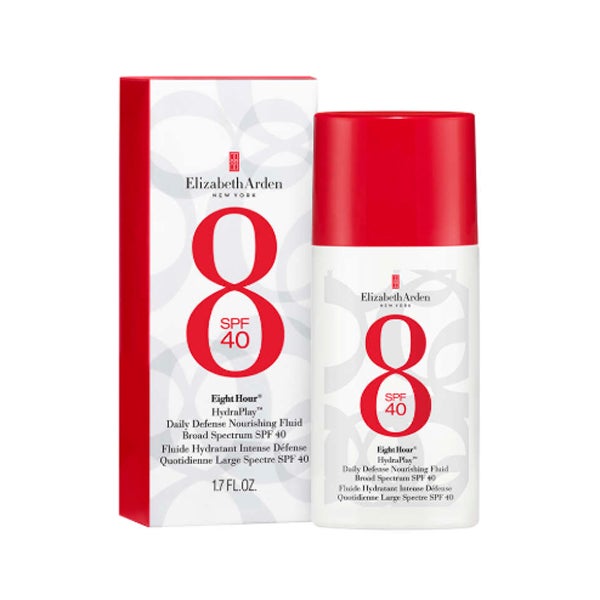 Elizabeth Arden HydraPlay™ Daily Defense Nourishing Fluid Broad Spectrum FPS 40 é uma nova adição à icônica coleção Eight Hour®, que oferece proteção invisível contra a poluição ambiental, luz azul e raios UVA/UVB. Com antioxidantes, um escudo botânico e extrato de beterraba, ajuda a proteger a pele dos efeitos do envelhecimento causados por esses fatores, que podem provocar danos dos radicais livres. Sua fórmula é projetada para proporcionar maior hidratação, deixando a pele suave, radiante e macia. É leve, sem perfume e vegano, não deixa resíduos brancos nem oleosos e é confortável na pele. Não comedogênico. Suave para todos os tipos de pele.