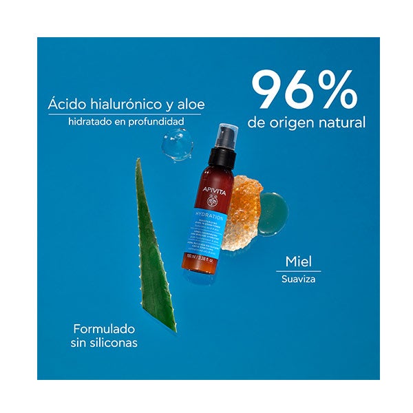 Hidrata profundamente com ácido hialurônico, extrato de aloe e mel de tomilho.