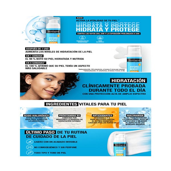 Neutrogena Hydro Boost Fluido Hidratante FPS 50 - Hidratação com protetor solar de uso diário.