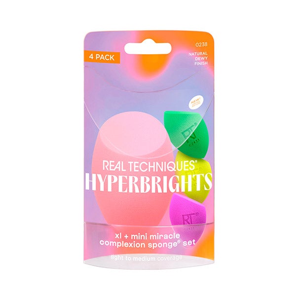 XL+ Mini Miracle Complexion Sponge Set. Conjunto de 1 ESPONJA XL para rosto e corpo + 3 MINI esponjas ideais para áreas pequenas do rosto.