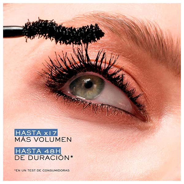 VOLUME EXTREMO INSTANTÂNEO: Proporciona até 17 vezes mais volume em cada aplicação*, alcançando cílios mais densos e definidos da raiz até a ponta.