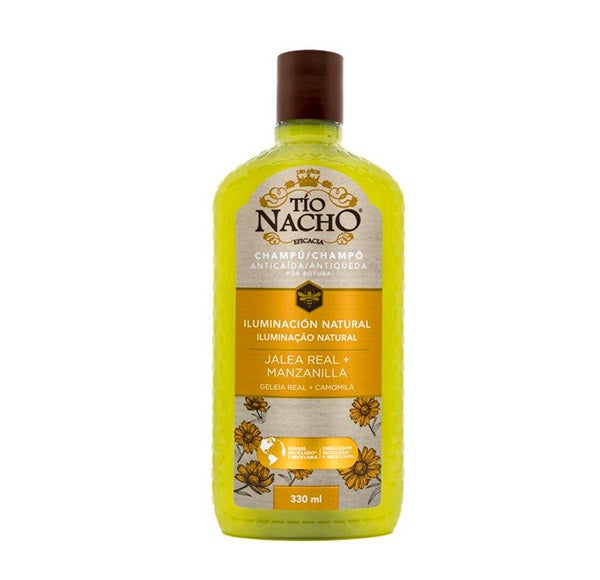 EVITA A QUEDA de cabelo por quebra com TÍO NACHO ILUMINAÇÃO NATURAL, que, graças à sua seleção de GELEIA REAL junto com ingredientes de origem natural como o Aloe Vera e a Camomila, ajudará a exibir um cabelo luminoso realçando os reflexos loiros e brilhos dourados com mais brilho. Além de fortalecer a fibra capilar. Exiba um cabelo luminoso e forte!