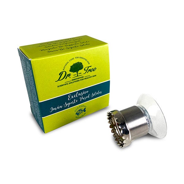 Ímã porta-sólidos da Dr. Tree, com o qual você poderá manter seus shampoos e géis sólidos seguros e em bom estado por mais tempo no chuveiro, sem se preocupar com o desconforto de as pastilhas escorregarem ao estarem molhadas. Basta pressionar a peça metálica sobre a pastilha para que fique dentro desta, e fixar a ventosa na parede do chuveiro. Siga os seguintes passos: