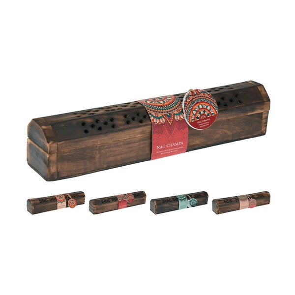 Conjunto de incenso em caixa de madeira, de 305x60x65mm, com 20 varetas de incenso e 20 cones de incenso.