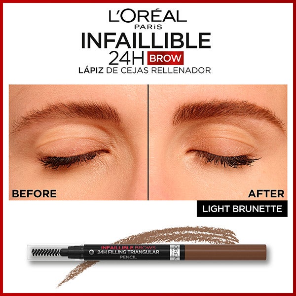 Consigue unas cejas rellenas y perfiladas, con una duración de 24 horas, con el nuevo perfilador de cejas L'Oreal Infaillible Brows 24H gracias a su punta triangular a prueba de errores.