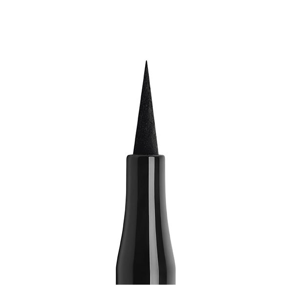 • Apoie a ponta do aplicador formando um ângulo para traçar uma linha na parte externa do olho, modulando a espessura da linha conforme o resultado desejado.