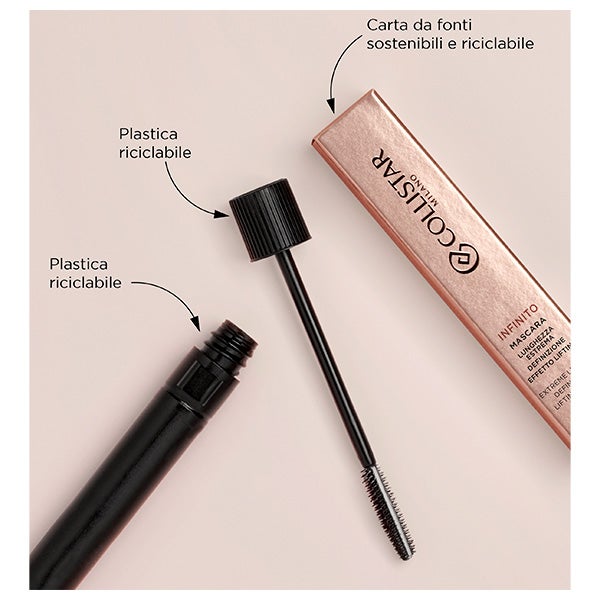 Infinito Mascara está disponível em dois tons de cor intensa, e garante cílios brilhantes e luminosos, sem grumos, sem migrar e de longa duração.