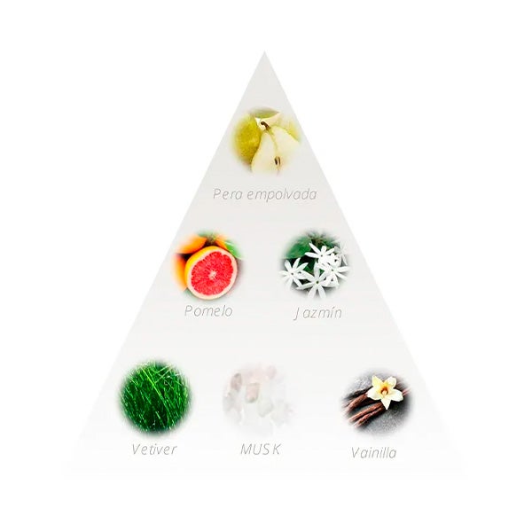 Uma captura viciante que funde a doçura da pera com um toque empoeirado e uma pincelada de Toranja, um contraste ousado que emana através do Jasmim e culmina em uma infusão de Almíscar banhado em Vetiver. Sua adicção pulsante criará uma aura radiante.