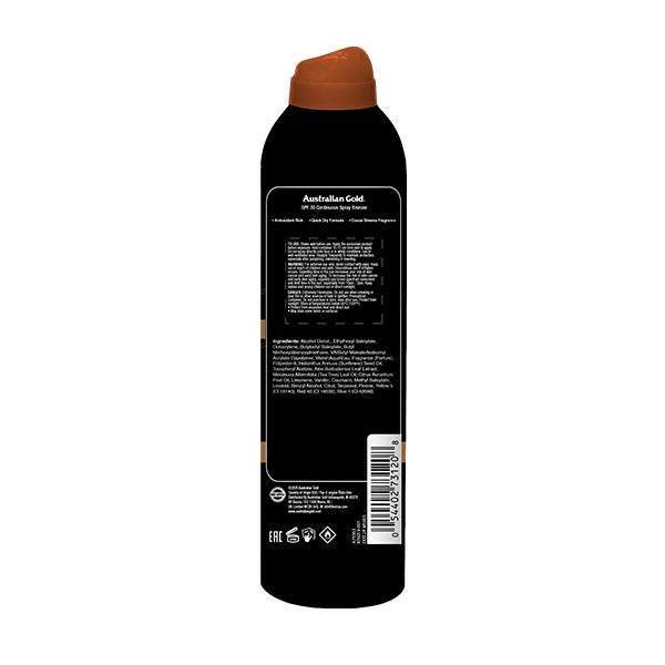 Desfrute de uma pele protegida, bronzeada e radiante com o Australian Gold Instant Bronzer Continuous Spray. SPF 30, este protetor solar em formato spray contínuo combina proteção de amplo espectro com um bronzeador instantâneo que realça imediatamente o tom natural da sua pele, deixando-a com um acabamento dourado e luminoso.
