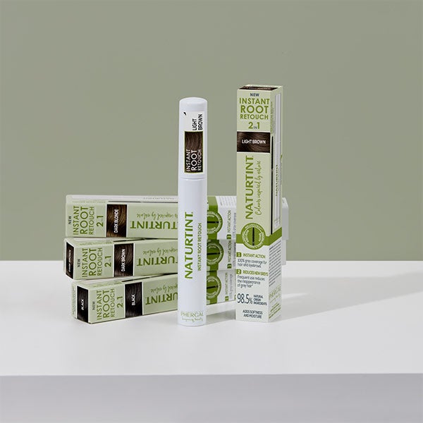 Com o cabelo seco, aplicar Naturtint Instant Root Retouch sobre os primeiros cabelos brancos de raízes, têmporas e sobrancelhas utilizando o pincel de alta precisão. Deixar secar durante 5 minutos. Pentear suavemente para uma distribuição uniforme.