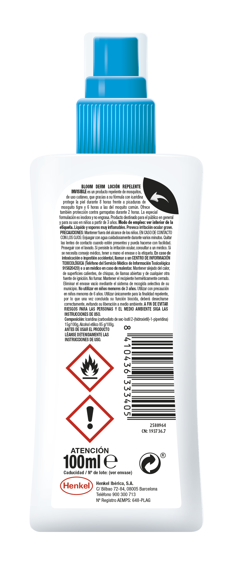 Icaridina (carboxilato de sec-butil 2-(hidroxietil)-1- piperidina) 15g/100g, Alcohol etílico 85g/100g.