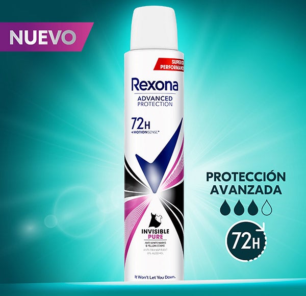 Rexona apresenta sua nova fórmula Advanced Protection que oferece proteção avançada de até 72 horas, ao mesmo tempo que te protege contra o mau odor e contra o suor de forma implacável. Além disso, sua tecnologia Motionsense que se ativa com o movimento, proporciona uma barreira mais forte e duradoura dando-te mais confiança em cada atividade.