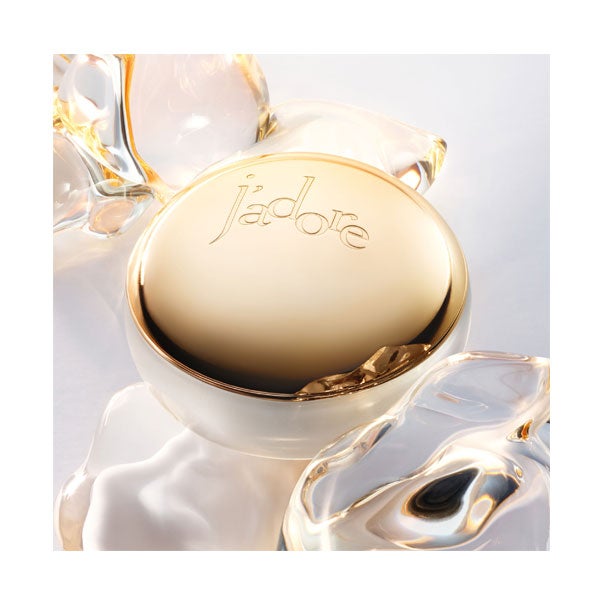 Formulada com 92%* de ingredientes de origem natural, este creme corporal perfumado hidrata e envolve a pele. Sua cor branca opalescente se revela em um frasco de vidro cuja forma evoca a pérola J'adore.