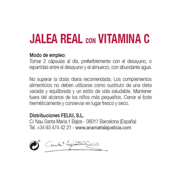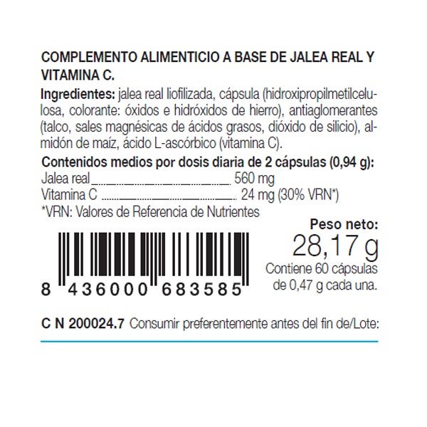 Ingredientes: jalea real liofilizada, cápsula (hidroxipropilmetilcelulosa,