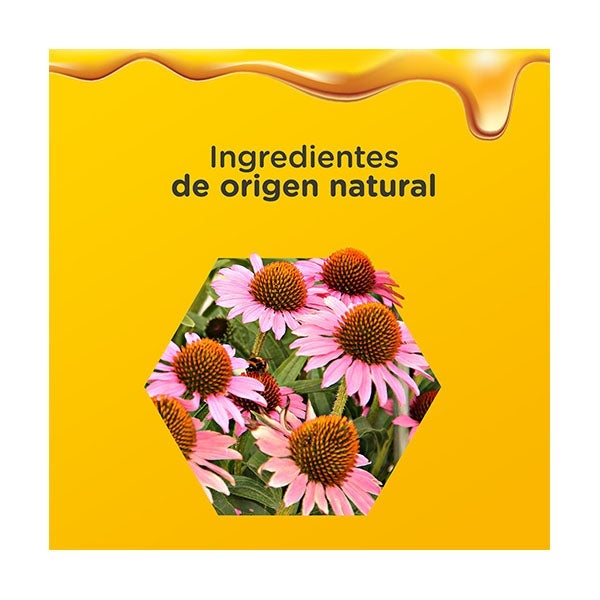 Miel (46%), sacarosa, agua, extracto de raíz de equinácea (extracto de Echinacea Purpurea), ácido cítrico (regulador de la acidez), saborizante, sorbato de potasio (conservante), benzoato de sodio (conservante), D-biotina, vitamina D.