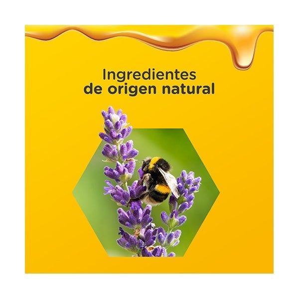 Miel (48%), sacarosa, agua, extracto de flor de lavanda (extracto de Lavandula angustifolia) , ácido cítrico (regulador de la acidez), sorbato de potasio (conservante), benzoato de sodio conservante), D-biotina, vitamina D.