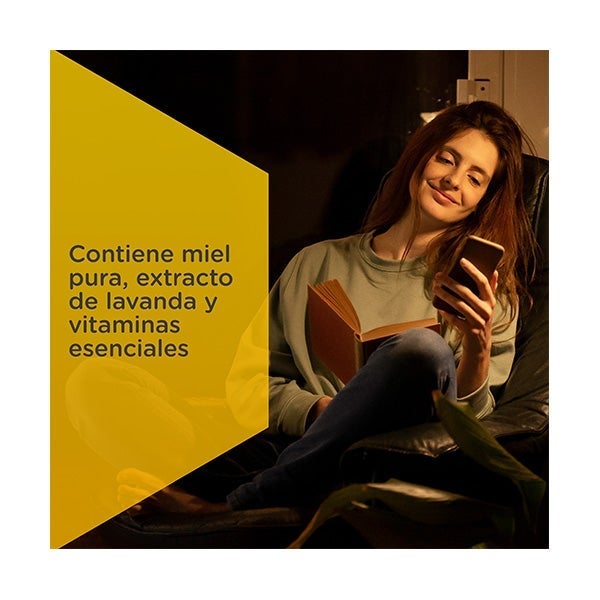 Também contém extrato de lavanda, conhecida por suas propriedades calmantes, para facilitar o relaxamento e um sono reparador.