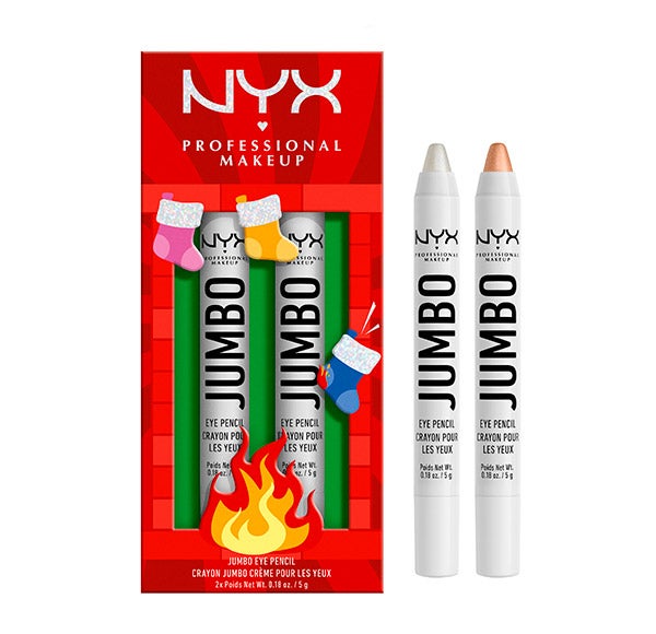 O Duo de Lápis de Olhos Jumbo Eye Pencil da NYX Professional Makeup, edição limitada Natal 2024, oferece dois tons festivos perfeitos para criar looks versáteis.