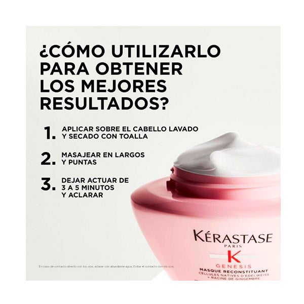 Utilize esta intensa máscara fortificante uma vez por semana ou após cada shampoo para nutrir, desembaraçar e fortalecer o cabelo, reduzindo o risco de queda de cabelo por quebra.