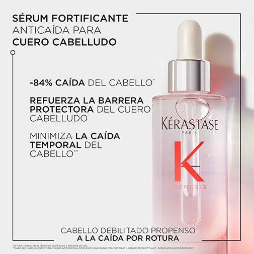 El Sérum Fortifiant Antichute Genesis de Kérastase es la solución ideal para el cabello debilitado y propenso a la rotura y caída durante el cepillado.