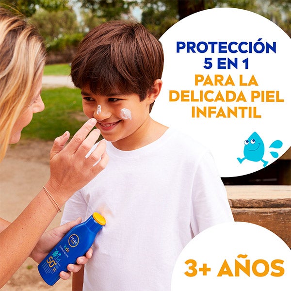 Pacote de presente NIVEA SUN com produtos para o cuidado completo da pele com proteção solar, seja para o rosto ou o corpo: NIVEA SUN Kids Loção Solar FP50+ 200ml, NIVEA SUN Aftersun 200ml, LIPOSAN Sun Protect Bálsamo Labial e Hansaplast Kids Curativos Mickey & Friends 20 uds. Além disso, leve de presente uma mochila e um jogo de cartas.