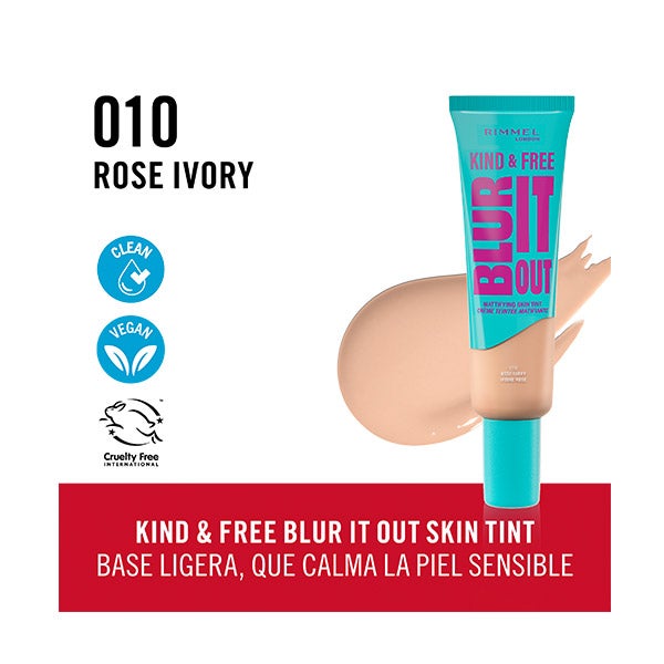 Nossa primeira linha de maquiagem clean, sem abrir mão de nada. 100% vegano e respeitoso com os animais e com o planeta. Livre de fragrâncias, óleos minerais e ingredientes de origem animal. Nosso NOVO Kind & Free™ BLUR IT OUT é uma base leve que acalma a pele sensível, com controle de brilho o dia todo. É elaborado com ingredientes 100% veganos e respeitosos com os animais, que são bons para você e bons para o planeta.