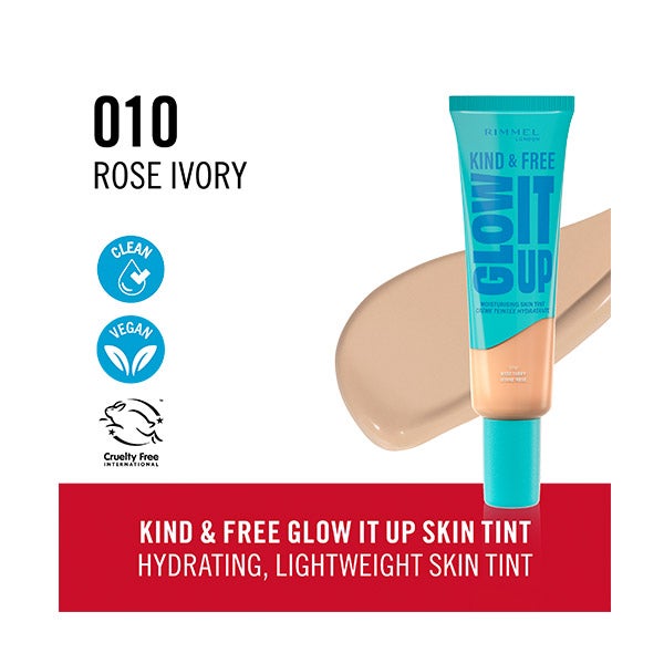 Nossa primeira linha de maquiagem clean, sem abrir mão de nada. 100% vegano e respeitoso com os animais e com o planeta. Sem fragrâncias, óleos minerais e ingredientes de origem animal. Nosso NOVO Kind & Free™ GLOW IT UP é uma base leve e hidratante que acalma a pele sensível, para uma pele glow o dia todo. É elaborado com ingredientes 100% veganos e respeitosos com os animais, que são bons para você e bons para o planeta.
