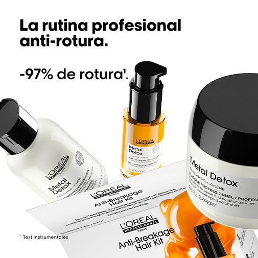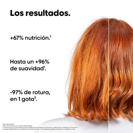 Shampoo + Máscara + Óleo: Este shampoo em creme sem sulfatos* remove suavemente o excesso de metais** do cabelo enquanto nutre a fibra. A fibra é fortalecida e mais resistente aos danos. Máscara Metal Detox de L'Oréal Professionnel, projetada para todos os tipos de cabelo, coloridos e/ou descoloridos.