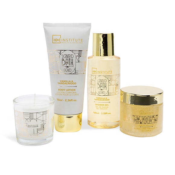Desfrute de um momento de luxo com o conjunto de banho da coleção Scented Bath Gold. Contém uma loção hidratante de luxo, um gel de banho esfoliante e uma vela perfumada com notas de baunilha e sândalo. Cada produto oferece uma experiência sensorial única.