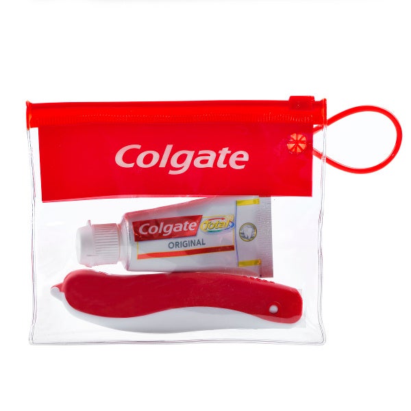 Kit Portátil Colgate inclui uma escova de dentes suave de viagem e uma pasta de 20ml, para uma boca mais saudável também fora de casa. A escova se dobrável junto com a pasta de dente em um prático estojo. A tampa se move sobre a cabeça da escova dobrada para manter as cerdas limpas e secas.