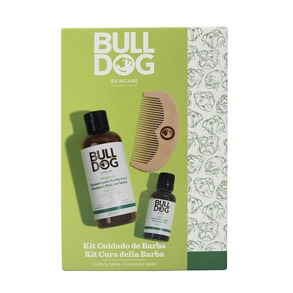 O kit de cuidado de barba Bulldog Skin Care combina um shampoo para barba hidratante e refrescante 2 em 1, um óleo para barba com óleos naturais para amaciar e hidratar e um pente de madeira para definir seu estilo. Consiga uma barba hidratada, revitalizada e definida com o kit de cuidado de barba da Bulldog Skincare.