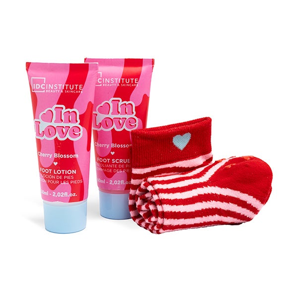 Descubra o conjunto presente da coleção ""In Love"": um trio perfeito para o cuidado dos seus pés. Inclui meias macias, um esfoliante revitalizante e um creme hidratante nutritivo. Ideal para mimar seus pés e desfrutar de um momento de relaxamento e bem-estar. Presenteie-se ou presenteie puro conforto!