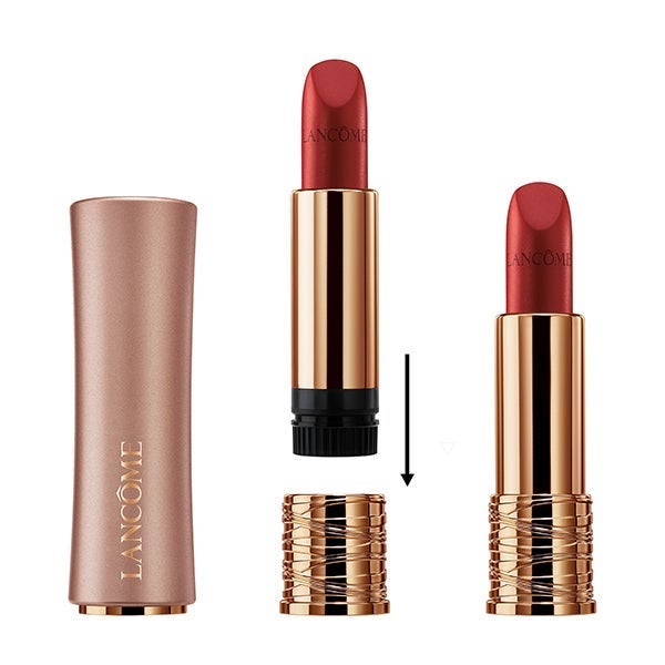 Lancôme L'Absolu Rouge Intimatte é um batom mate sedoso com uma fórmula modulável, leve e confortável que desliza suavemente e sem esforço sobre os lábios. Proporciona cuidado e conforto, esquecendo que o está usando. Magistralmente encapsulado em uma nova embalagem luxuosa de ouro rosa feita na França, com uma silhueta única, elegante e feminina com um luxuoso anel engastado.