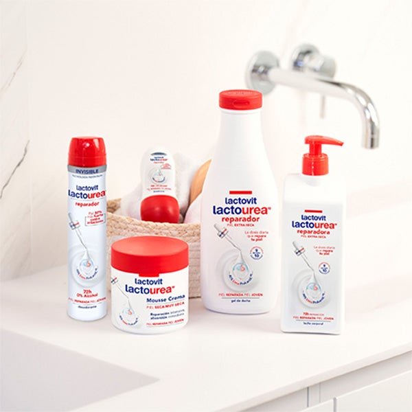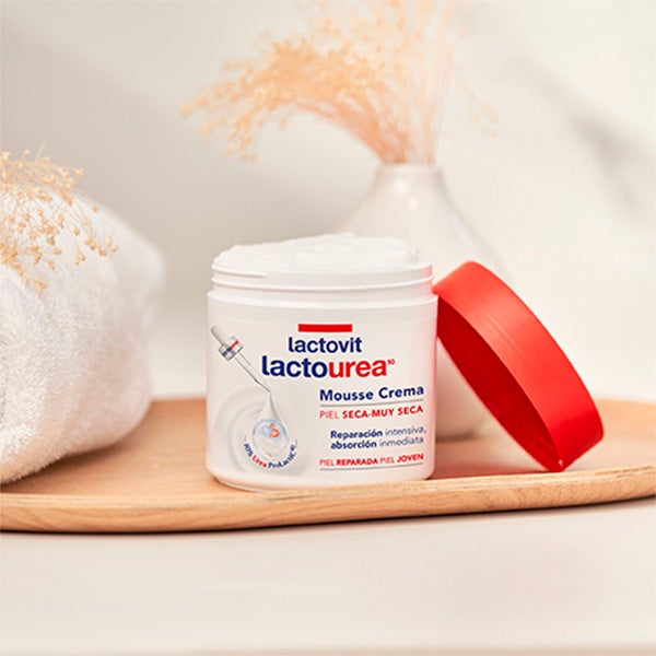 Sua exclusiva fórmula repara e reforça a pele intensamente. Sua textura mousse, leve como o ar, proporciona uma absorção imediata e um toque sedoso. Lactourea, com sua dupla ação, proporciona uma hidratação intensiva e repara a barreira cutânea. Aumenta em +60% a produção de ceramidas, oferecendo assim uma reparação superior às loções só com ureia.