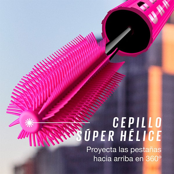 Com a tecnologia da escova efeito super hélice, proporciona volume e comprimento imitando os fogos de artifício com cerdas que projetam os cílios para cima para alcançar um olhar 360º.